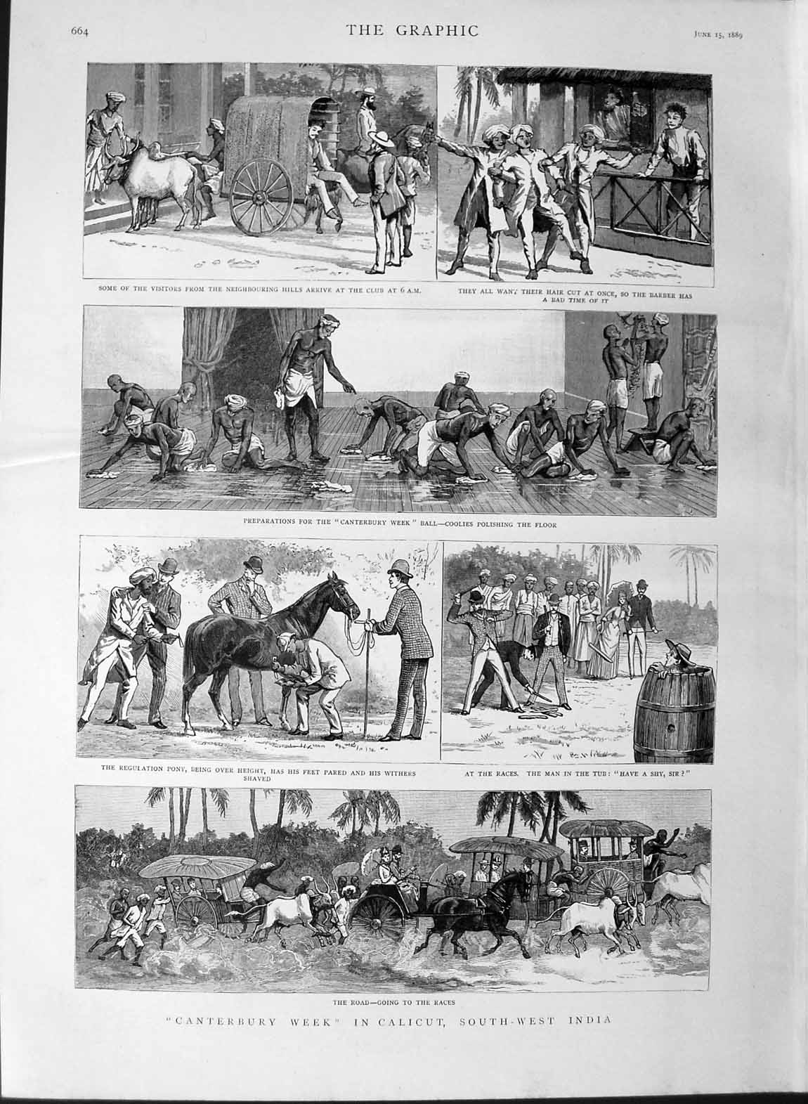 The picture tells the story, it shows ‘hat clad’ Englishmen coming to the Malabar club on the Calicut Beach early in the morning, riding down the hills on bullock carts through the night, with many ladies and the pomp. They must look their best, so the first call of the day is to get their hair cut (look at the guy’s hair sticking out) and barbers are pulled out of their beds, struggling. Looking at the picture – makes me a little confused as to whether the artist was really in Calicut, for that kind of a Chaprasi and barber dress is unusual for Calicut, but perhaps it was so.