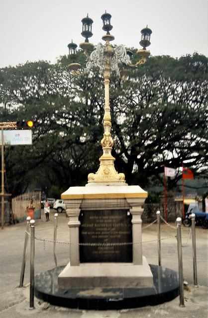 The people at Palghat decided to honor him and constructed a lamp pillar near the district hospital, very Victorian in design as you can see, complete with five kerosene lamps, called Anchu Vilakku which survives to this day. This was done at the initiative of municipal chairman Rao Bahadur Chinnaswamy Pillai around 1893, with funds collected from the local community. The people of Palghat still remember Chetti and his unfortunate tryst with destiny.